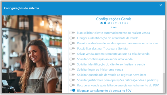 Bloquear cancelamento de venda no PDV - Impede que as vendas sejam canceladas pelo ponto de venda, independente das permissões de acesso do usuário. Ao clicar no botão Cancelar uma solicitação de cancelamento será enviada ao ERP, onde o usuário responsável poderá confirmar ou recusar o cancelamento da venda. O PDV receberá a confirmação ou recusa do cancelamento de venda através do sincronizador, na rotina Vendas. É possível acompanhar o processo visualizando o status na venda que se pretende cancelar: Cancelamento solicitado (aguardando confirmação ou recusa no ERP), Cancelamento recusado (cancelamento recusado no ERP, a venda segue válida) e Cancelada (cancelamento confirmado no ERP). Documentos vinculados a venda também serão cancelados caso a solicitação seja confirmada.
