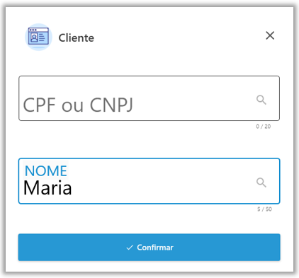 Nome do cliente – Campo Nome disponibilizado junto a solicitação de CPF/CNPJ do cliente. Ao finalizar a venda utilizando o modo de Pedido confirmado o nome do cliente será exibido sem a necessidade de cadastrá-lo. Para emissão de documentos fiscais é necessário cadastrar o cliente informando número do CPF/CNPJ.