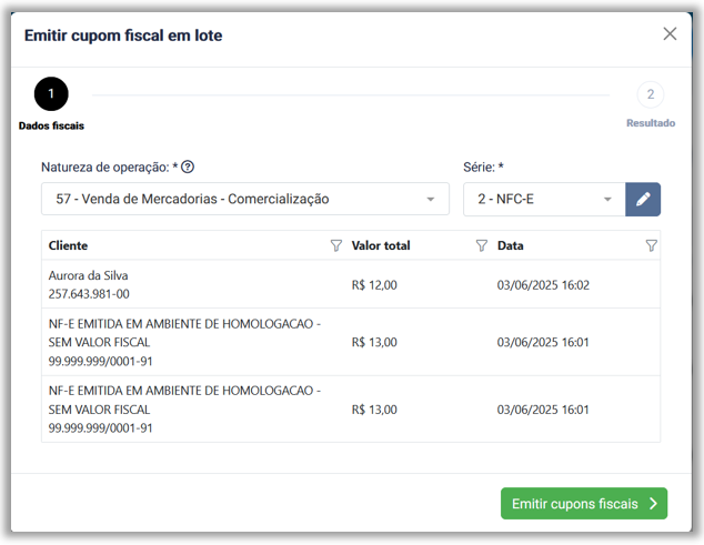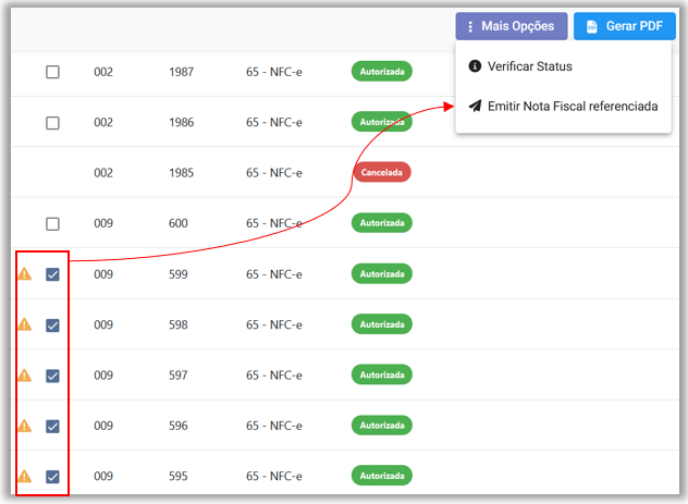 Emissão de notas fiscais referenciadas – Esta nova funcionalidade permite a emissão de 1 NF-e a partir de 2 ou mais NFC-e, simultaneamente. Após selecionar os cupons fiscais, na parte superior da tela será exibido o menu Mais opções com a função Emitir Nota Fiscal referenciada. Disponível na tela Vendas > Cupom Fiscal.