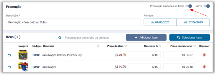 Promoções – Correção do cadastro de promoções em filiais. Mesmo marcando esta opção, o ERP estava cadastrando a promoção apenas na matriz, não sincronizando os dados promocionais com as filiais.
