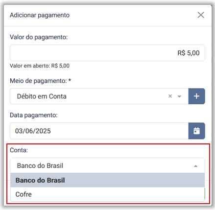 Financeiro – O campo Conta será editável para permitir alteração da conta bancária ao realizar pagamento de uma receita/despesa. Também é possível editar esta informação acessando lançamentos financeiros já quitados.
