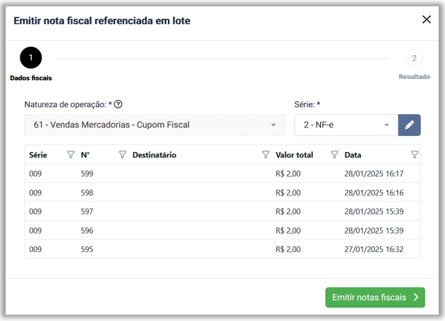 Emissão de notas fiscais referenciadas – Esta nova funcionalidade permite a emissão de 1 NF-e a partir de 2 ou mais NFC-e, simultaneamente. Após selecionar os cupons fiscais, na parte superior da tela será exibido o menu Mais opções com a função Emitir Nota Fiscal referenciada. Disponível na tela Vendas > Cupom Fiscal.