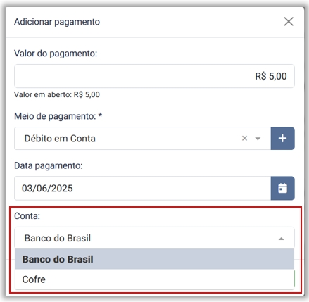 Financeiro – O campo Conta será editável para permitir alteração da conta bancária ao realizar pagamento de uma receita/despesa. Também é possível editar esta informação acessando lançamentos financeiros já quitados.