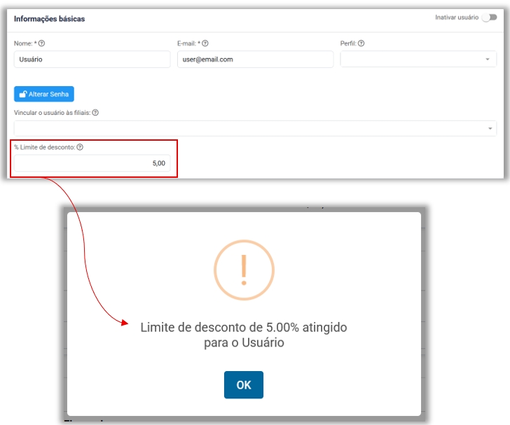 Vendas – Validação do % Limite de desconto definido para o usuário ao inserir itens em pedidos de venda, orçamentos e emissão de documentos fiscais eletrônicos. Esta validação ocorria apenas no desconto total da venda.