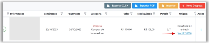Correção no link de Origem, que agora permite visualizar corretamente a Nota Fiscal ou Lançamento recorrente vinculado à despesa.